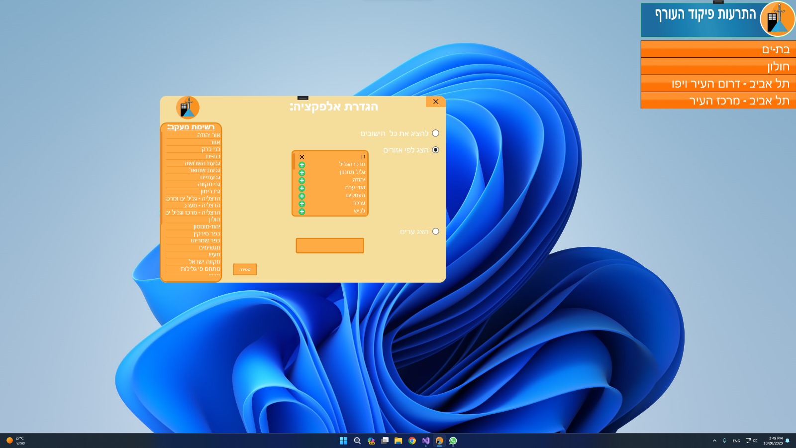 אל תצטרך להגביל את עצמך לעיר אחת! ,אם יש אפשרות שתוכל לבחור את האזורים שמעניינים אותך מכל רחבי הארץ. על פי פיקוד העורף, הארץ מחולקת לאזורים, וכל אזור מכיל מספר ערים מרכזיות. תבחר את האזור שמתאים לך או שמעניין אותך, ותוכל לקבל התרעות חיוניות ישירות לפי האילו אזורים אתה בוחר.